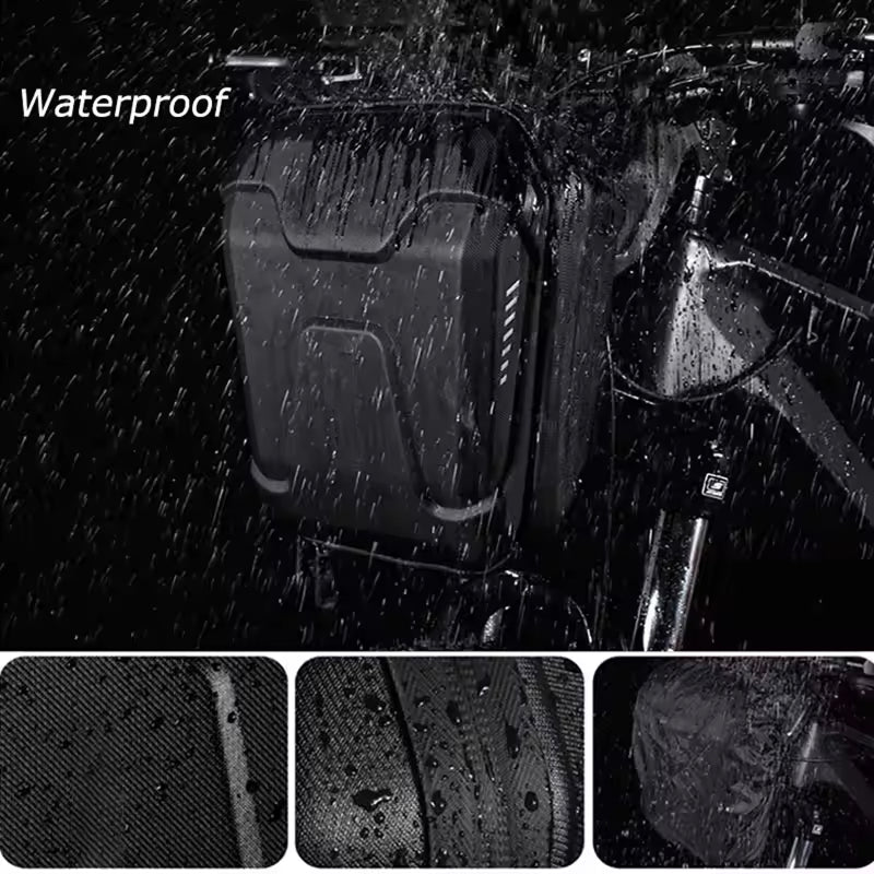 The BagosBike bag features complete waterproof protection with EVA hard shell construction. It maintains its protective seal during heavy rainfall, ensuring your electronics and essentials remain completely dry in any weather condition.