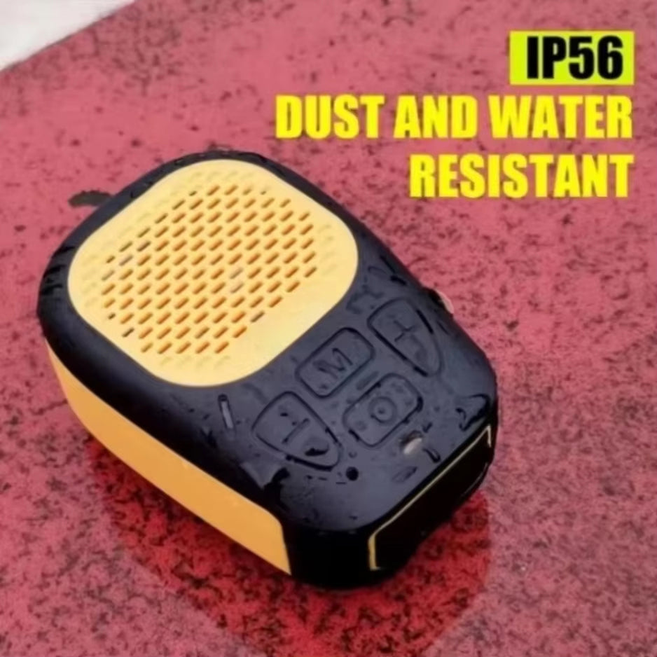 Constructed with ABS hard plastic and TPU soft rubber, this speaker withstands drops from 2 meters and resists water and dust with its IP56 rating, ensuring longevity in tough conditions.
