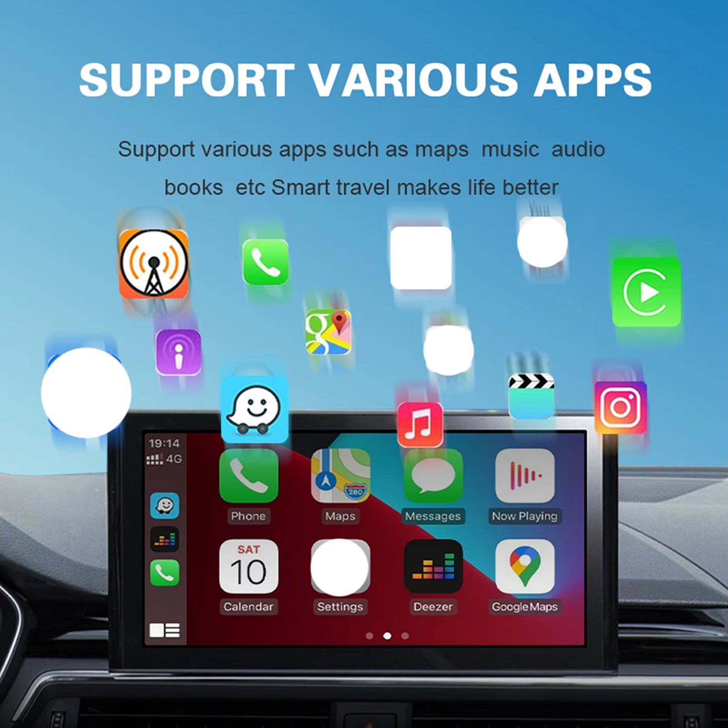 The CarviTek Car Play Adapter supports all CarPlay-compatible apps, including Maps, Music, Podcasts, and more, for a seamless driving experience.