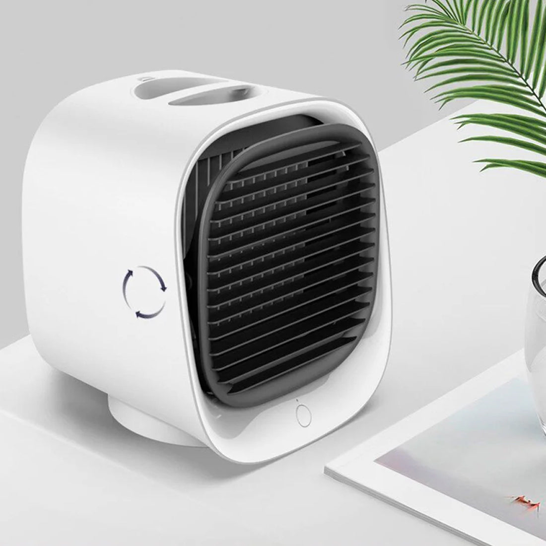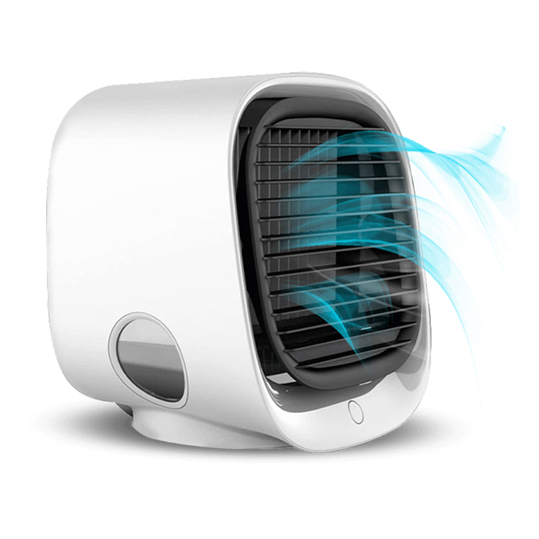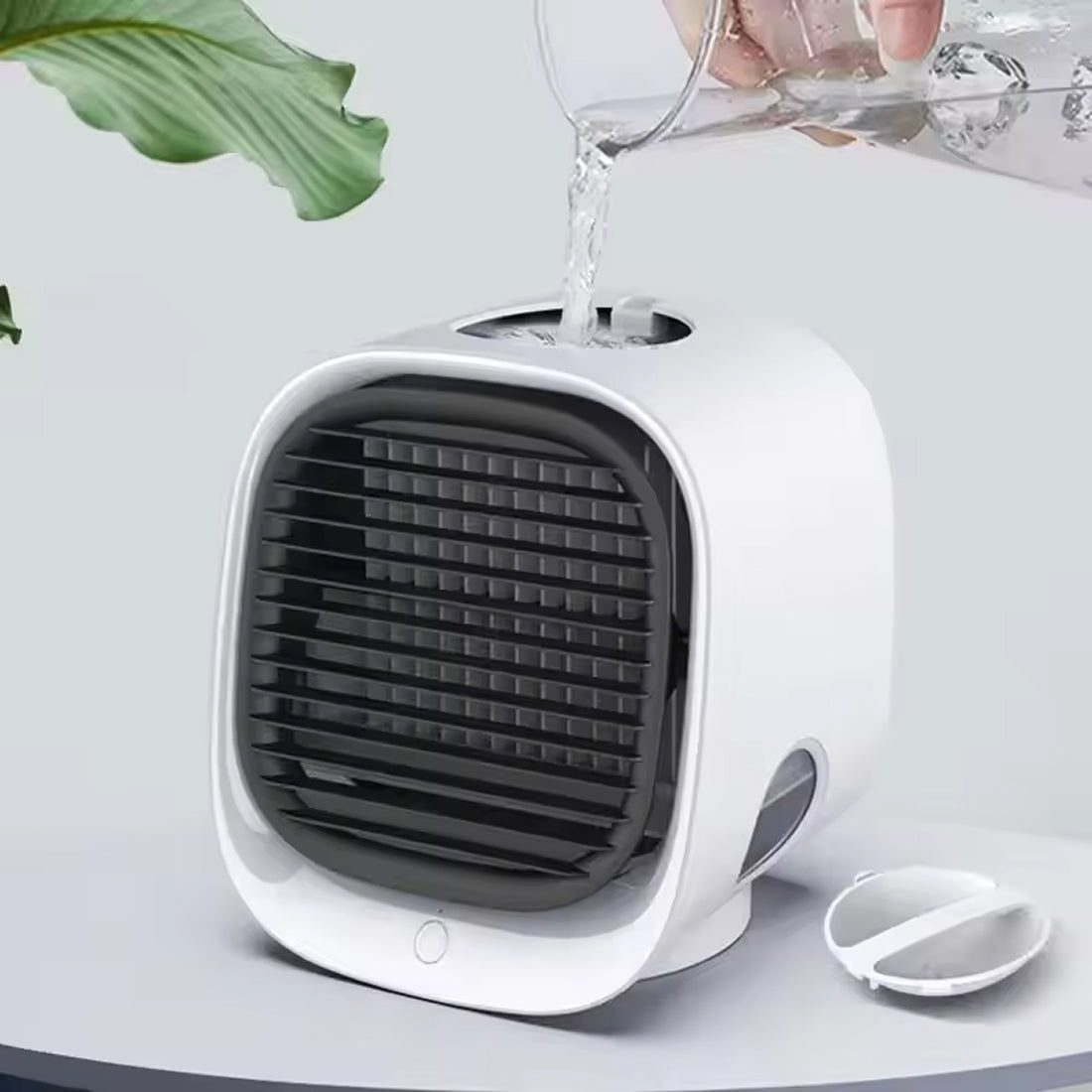 The 300ml water tank lasts up to 8 hours, depending on the cooling mode. Refilling is quick and easy.
