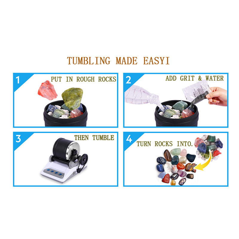 Complete starter packages include professional-grade grinding grits, sample rough stones, and comprehensive instruction guides. Everything required for creating beautiful polished gemstones arrives ready-to-use, eliminating additional shopping or preparation time.