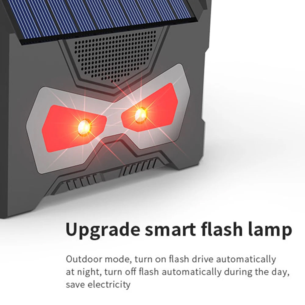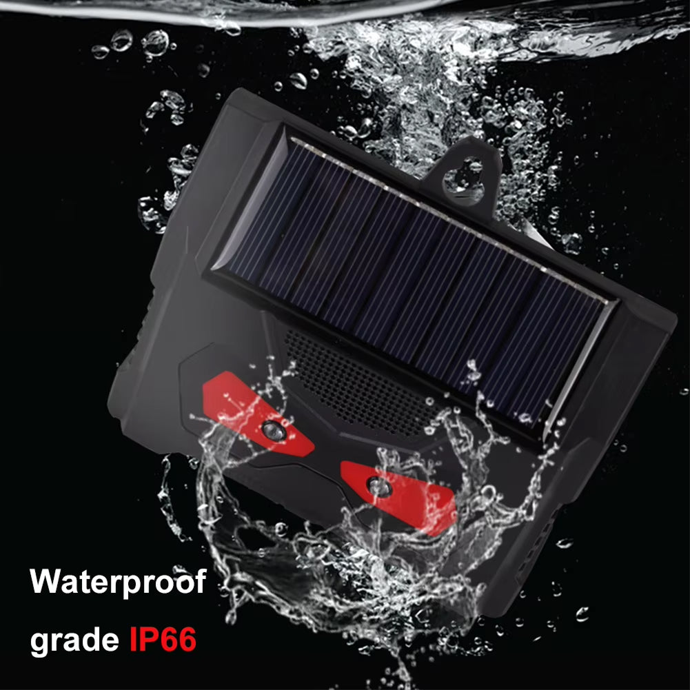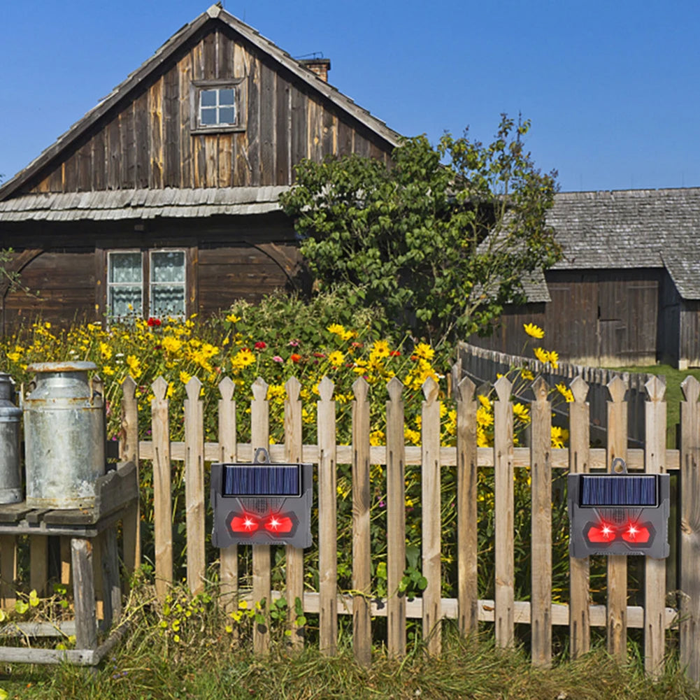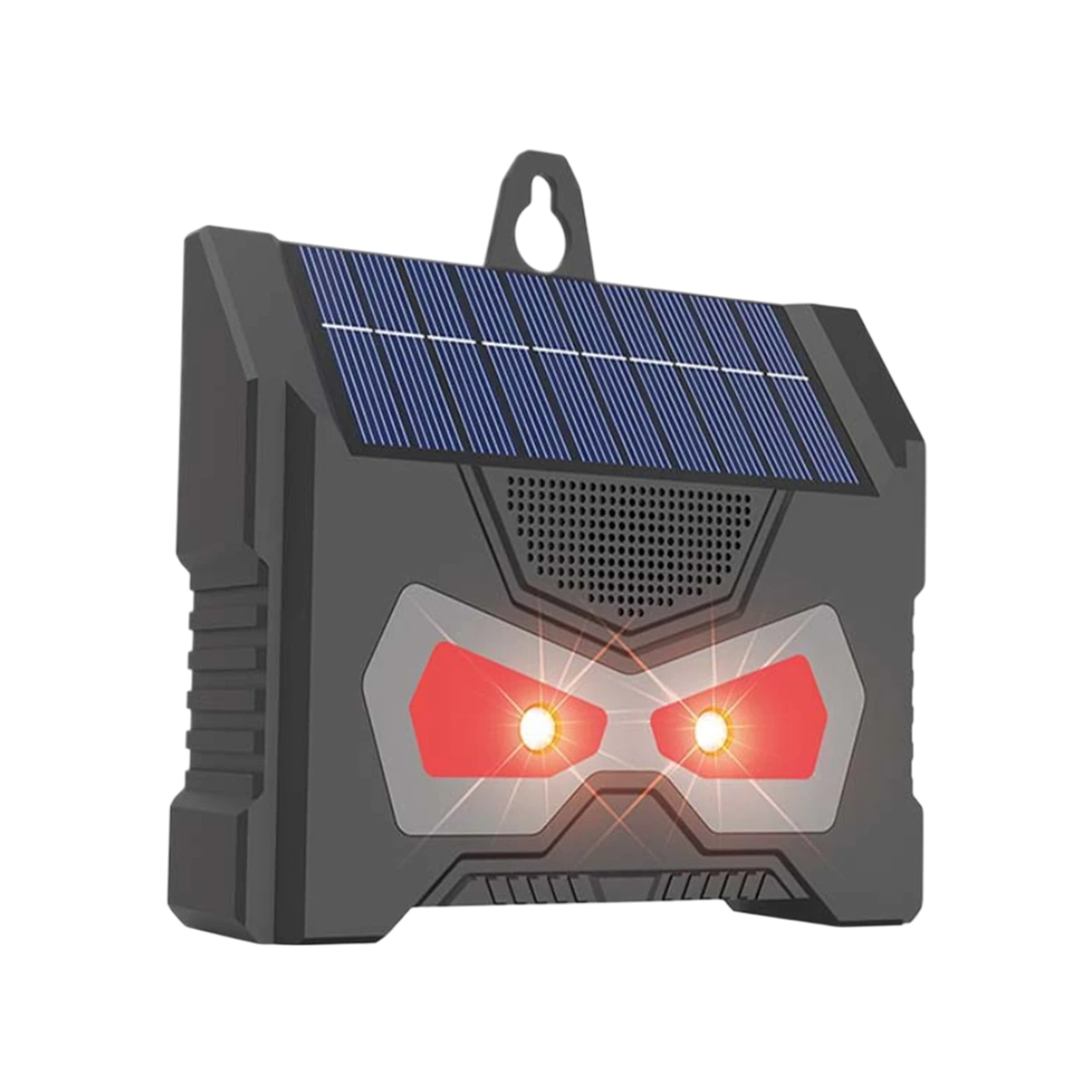 The WufiRodo uses ultrasonic waves and LED flashing lights to mimic predator eyes, scaring away animals without physical contact. It’s a humane and effective deterrent.